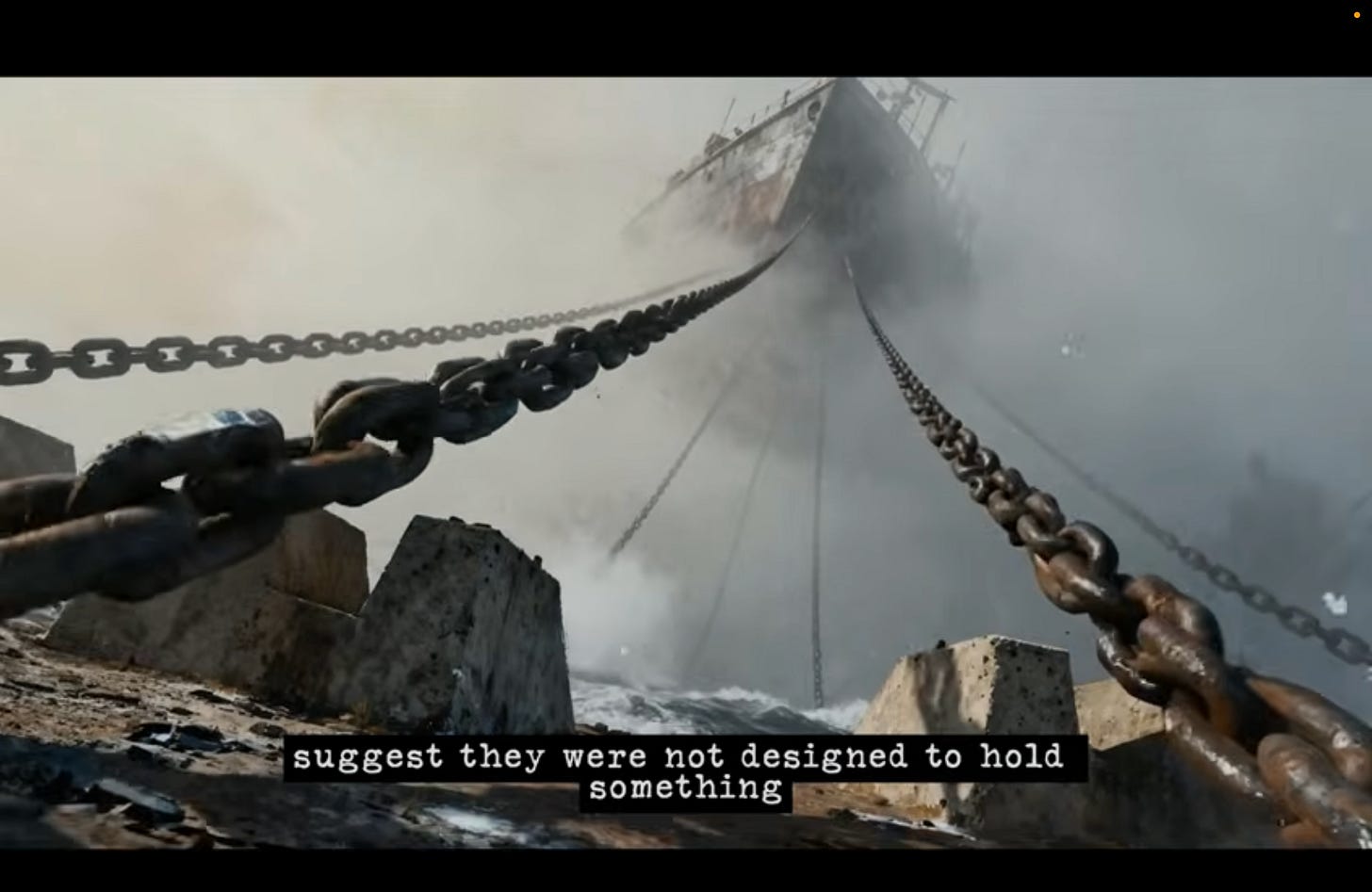 Essas âncoras sugerem que foram projetadas não para sustentar nada, mas para resistir e "segurar" uma força poderosa que tentava arrancar algo da Terra. Algo estava prestes a ser empurrado para longe da Terra por uma força imensa.