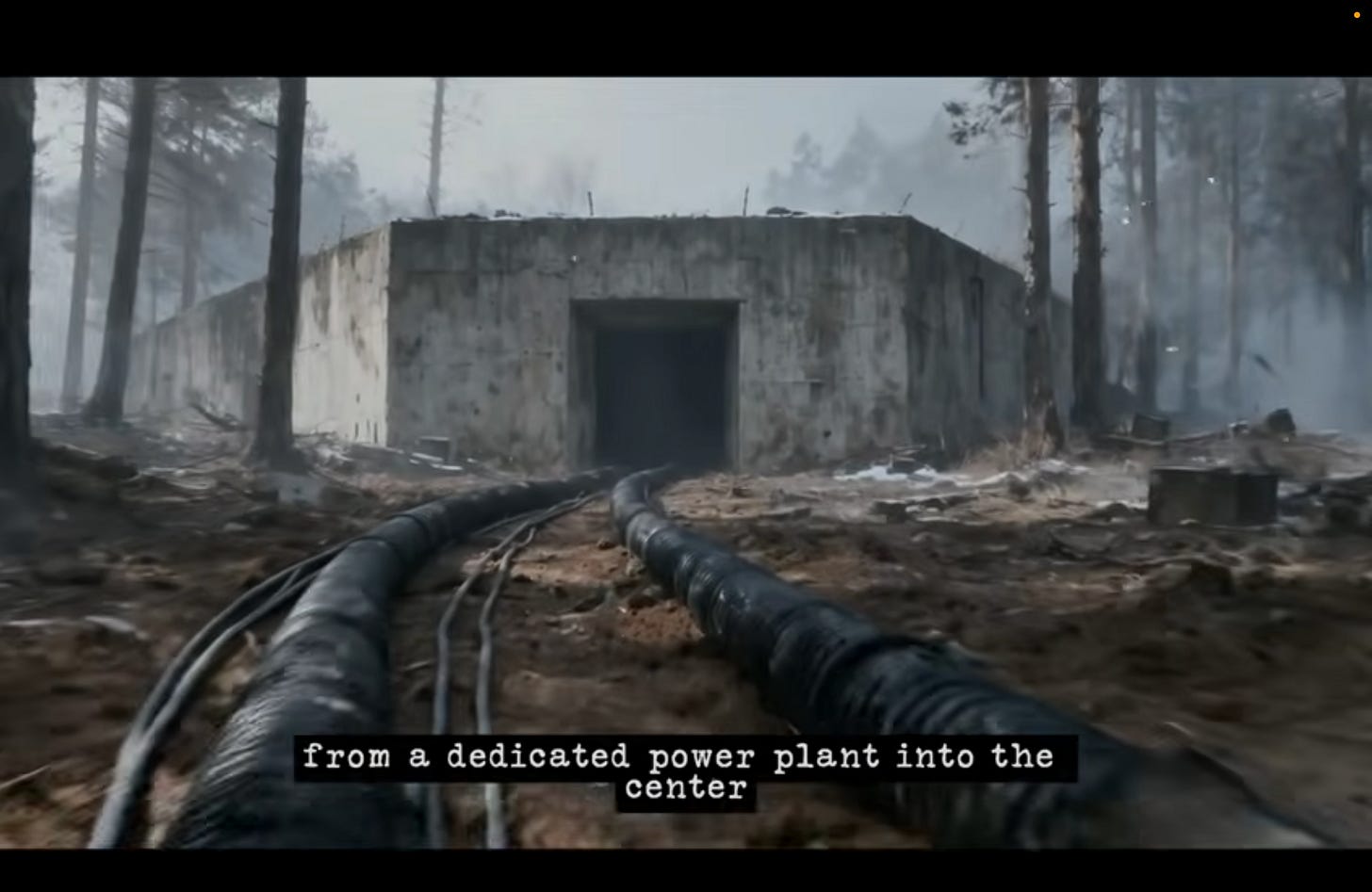 "Por que um cabo de alta tensão gigantesco, tão grosso quanto a coxa de um ser humano, é encaminhado diretamente de uma usina de energia dedicada até o centro deste anel?"